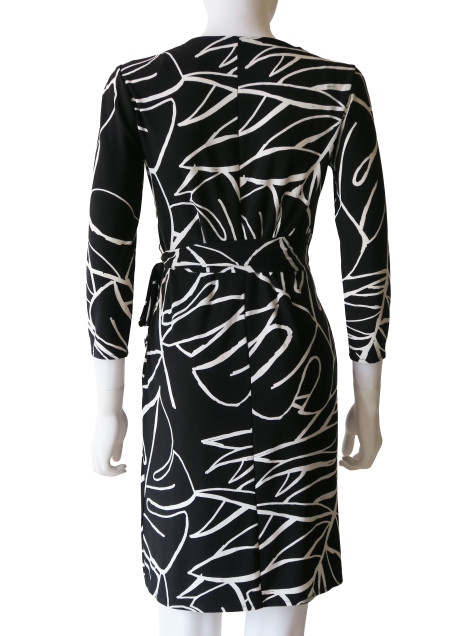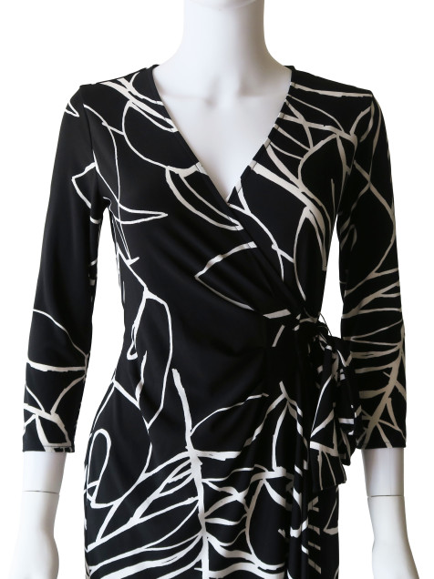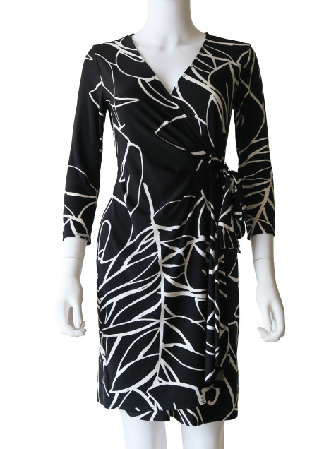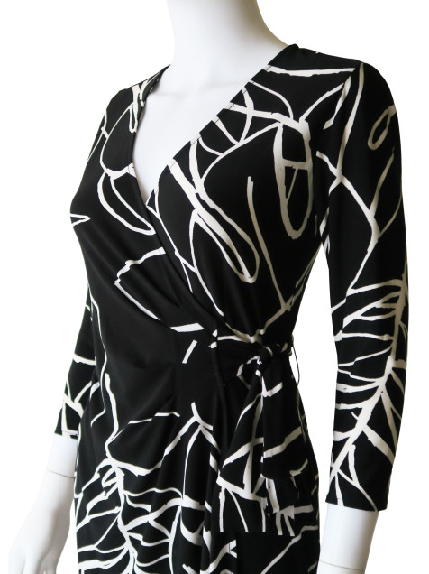 Vestido envolvente de tela estampada marca Donna Morgan, en perfecto estado.