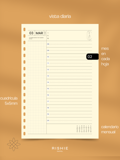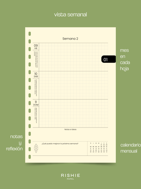 Esta agenda artesanal está creada para quienes disfrutan ponerle intención a cada día. Su diseño está inspirado en el estilo Hobonichi, una filosofía que abraza la vida real: anotar lo importante, lo cotidiano, lo que emociona y hasta lo que duele. Todo lo que te ayuda a conocerte, avanzar y proyectar lo que quieres construir.