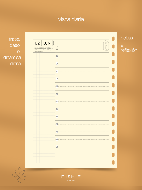 Una agenda consciente, ligera y profunda a la vez. Un espacio para planear tu vida… y también para pausarla, sentirla y disfrutarla.