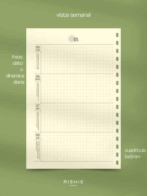 Esta agenda artesanal está creada para quienes disfrutan ponerle intención a cada día. Su diseño está inspirado en el estilo Hobonichi, una filosofía que abraza la vida real: anotar lo importante, lo cotidiano, lo que emociona y hasta lo que duele. Todo lo que te ayuda a conocerte, avanzar y proyectar lo que quieres construir.