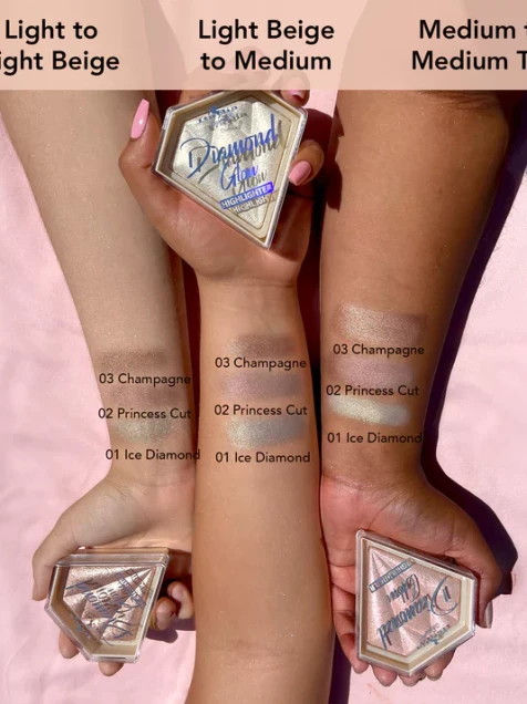 Iluminadores Diamond Glow, con un brillo ultra fino que le dará a tu rostro y cuerpo un acabado increíble.