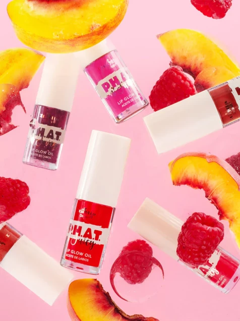 Frunce con P.H.A.T Lip Glow Oil! Este aceite nutritivo te brinda un brillo magnífico y duradero sin ningún residuo pegajoso. Y con un delicioso aroma a melocotón y frambuesa, lucirás y olerás increíble. Además, dejará tus labios suaves y tersos.