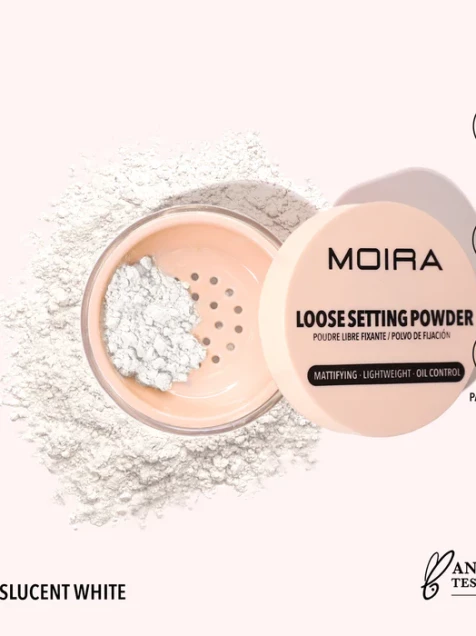 MOIRA Loose Setting Powder es un polvo ligero que proporciona un acabado mate sedoso y suave. Enriquecido con colágeno y vitamina E, este polvo hidratante de acabado difumina la apariencia de poros y líneas de expresión, y suaviza la tez. Su fórmula única está diseñada para absorber la grasa y fijar el maquillaje durante todo el día sin dejar rastros.