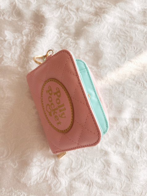 Cartera Nueva ✨ rosa tornasol y letras en dorado. Tiene bolsillo para monedas y tarjetero. Incluye colgante de Polly Pocket 🥰