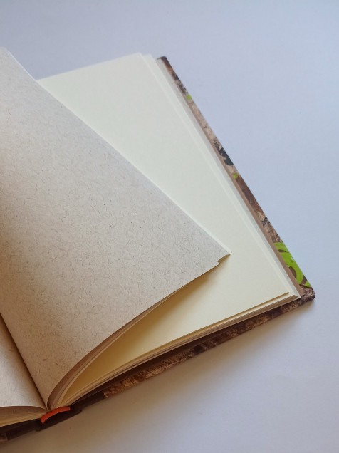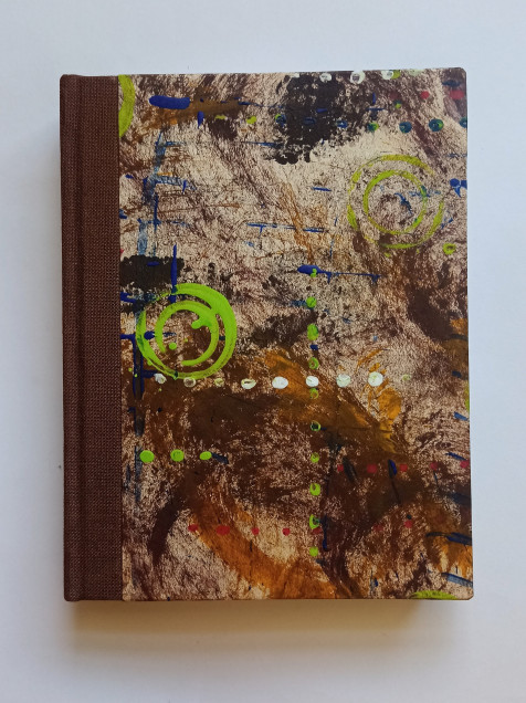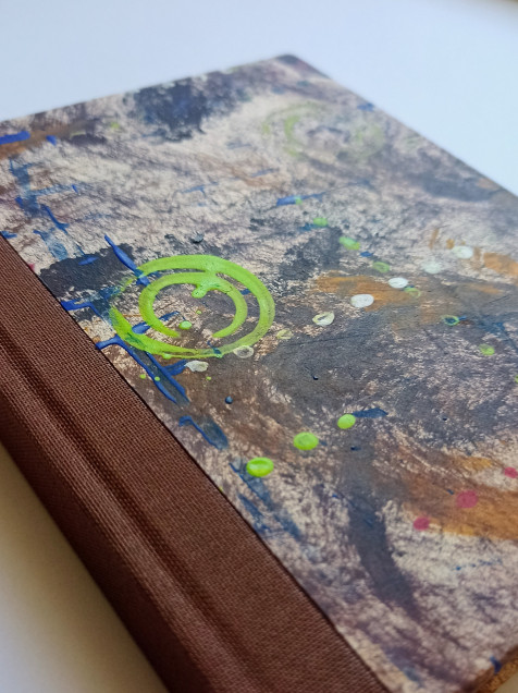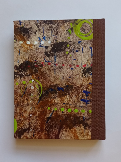 Libreta de tapas duras, lomo en tela y portadas con papel decorado a mano (acrílico)