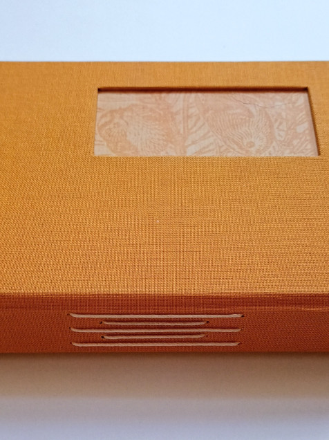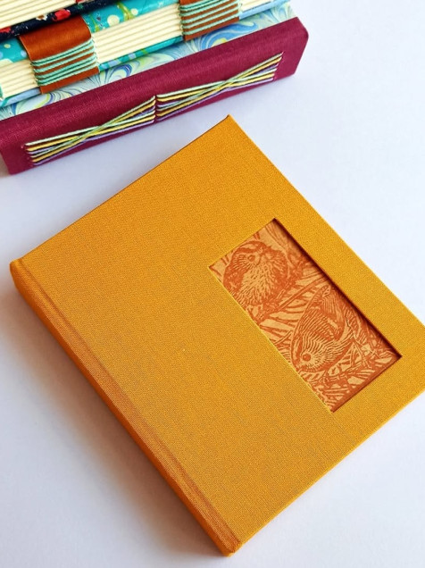 Libreta de tapa dura y ventana con imagen de pájaros revelada con técnica de antotipia (revelado al sol con pigmentos naturales)