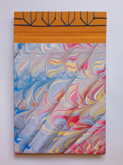 Libreta de tapa dura con costura japonesa. Papel marmoleado original en portada