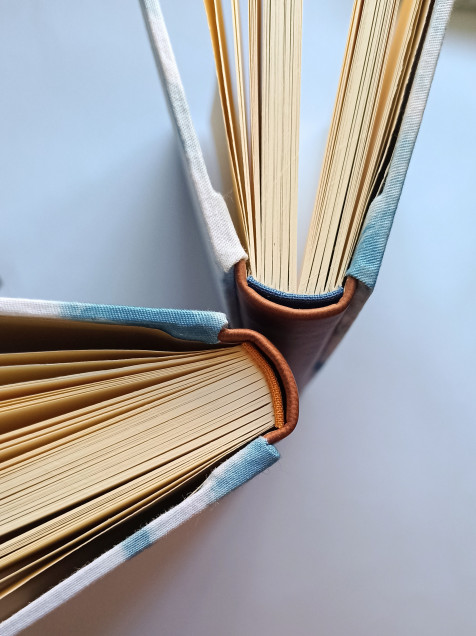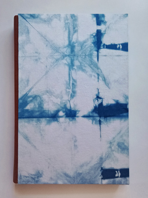 Libreta de tapa dura forrada con tela tejida a mano con añil. Lomo de vinipiel