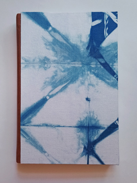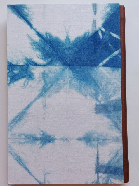 Libreta de tapa dura forrada con tela tejida a mano con añil. Lomo de vinipiel