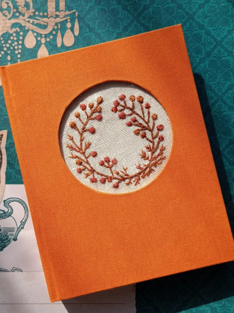 Libreta de tapa dura con bordado hecho a mano en la portada