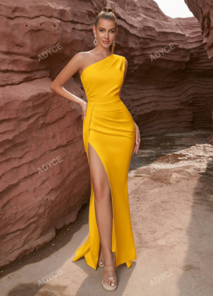 Vestido ajustado escote drapeado de espalda abierta de satén