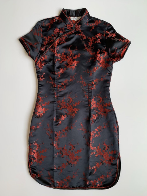 VESTIDO VINTAGE QUIPAO COLOR NEGRO TALLA M