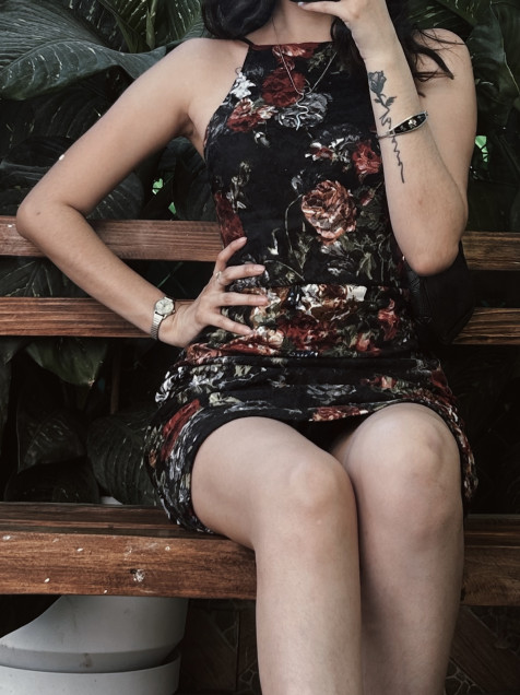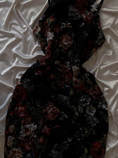 Vestido negro halter de encaje con flores
