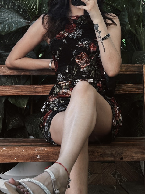 Vestido negro halter de encaje con flores.