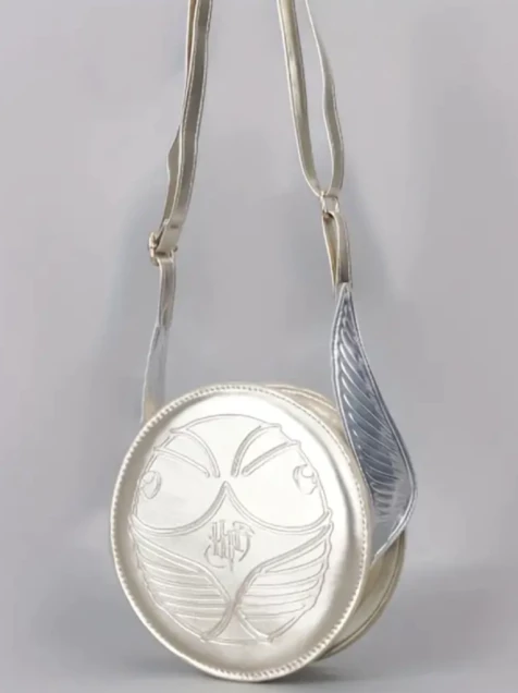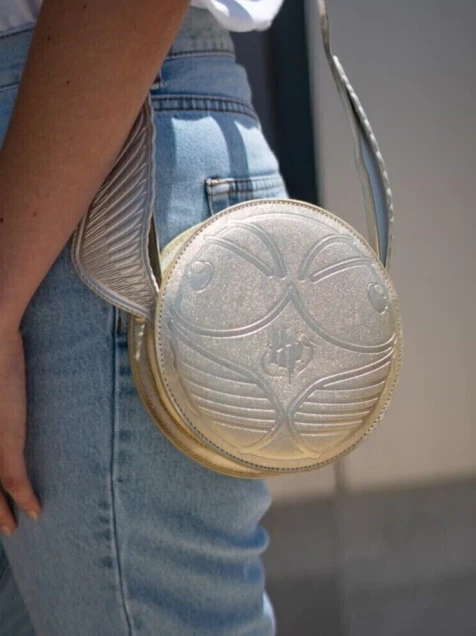 Con su diseño brillante inspirado en la legendaria Snitch, este bolso es ideal para llevar tus esenciales con un aire mágico y lleno de personalidad. ¡Haz que cada día sea una aventura brillante!