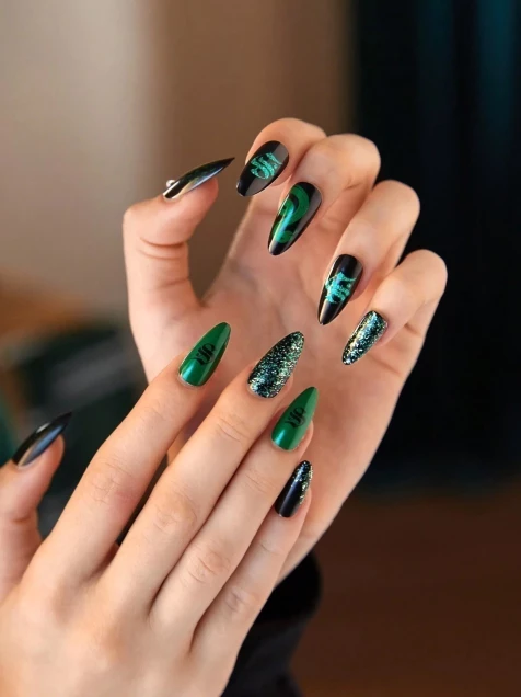 Set de uñas diseño casa Slytherin