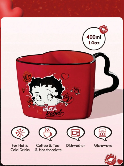 Descubre la encantadora taza diseño Betty Boop en forma de corazón de 400ml, perfecta para los amantes de lo vintage y lo adorable. Con su diseño icónico y romántico, esta taza no solo es ideal para disfrutar de tu café o té favorito, sino que también añade un toque de personalidad a tu cocina. Regálate o sorprende a alguien especial con esta pieza única que combina estilo y funcionalidad. ¡Haz que cada sorbo sea un momento especial!