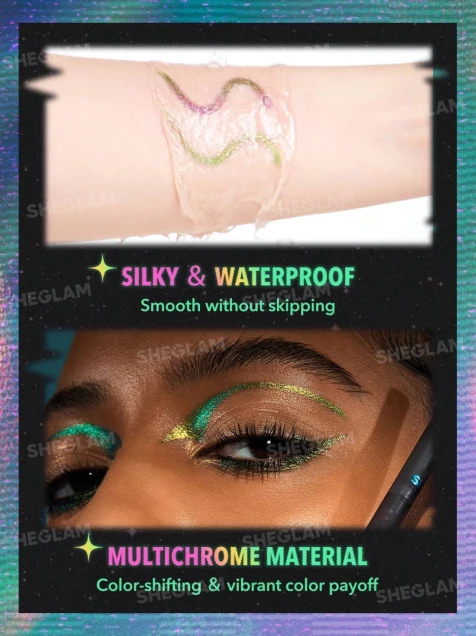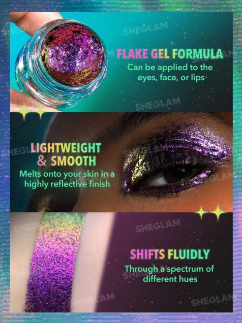 Mejora tu brillo con tonos que cambian de color y que atraerán todas las miradas. Añade profundidad y dimensión a tus mejillas u ojos con nuestro nuevo Flake Gel multicolor que cambia de color según la luz. Con un caleidoscopio de tonos divertidos, ¡tenemos un tono especial para cualquier look que busques!
