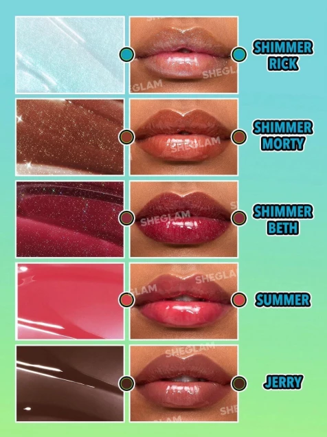 ¿Lista para que tus labios brillen más que las aventuras de Rick y Morty? El Rick and Morty X SHEGLAM Set de brillos labiales trae los tonos más brillantes y lindos que harán que tu sonrisa sea la estrella del multiverso. Su fórmula ligera y súper hidratante te hará sentir tan bien como un episodio sin caos. ¡Ponte creativa y deja que tus labios hablen por ti con un toque divertido y espectacular!