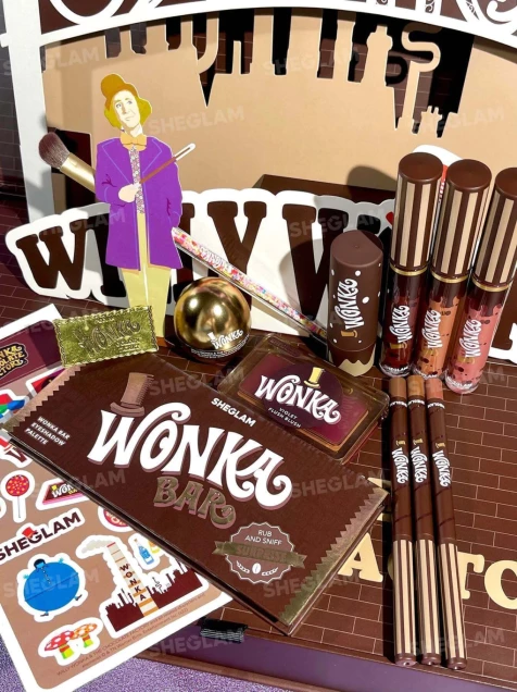 SHEGLAM presenta una colección de cinco nuevos productos de belleza imprescindibles inspirados en la maravilla y la magia de la película de culto de Willy Wonka. Sumérgete en las deliciosas sombras con aroma a chocolate de nuestra paleta Wonka Bar, vuélvete violeta con nuestro colorete que cambia de color con aroma a arándanos y dale placer a tus labios con los productos labiales de cacao que desearás todos los días.