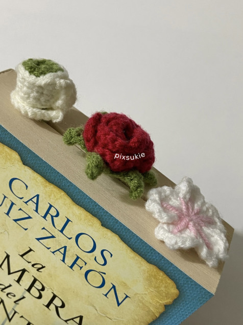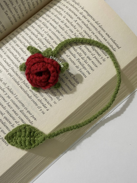 Marcapáginas Rosa Roja Hecho a Mano Tejido a Crochet