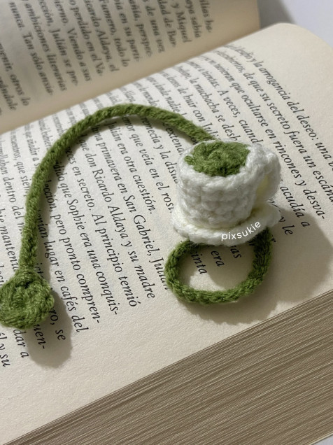 Marcapáginas Taza Matcha Hecho a Mano Tejido a Crochet Separador de Libros Cute
