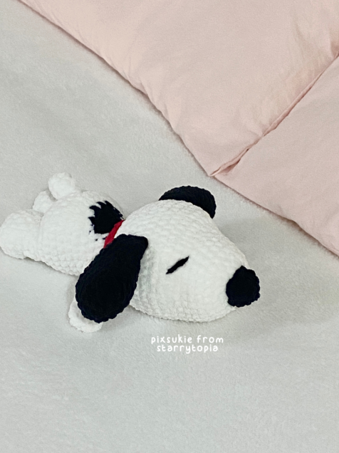 Snoopy Dormido Acostado Peluche Crochet Tejido a Mano