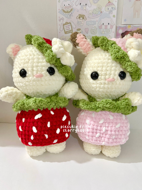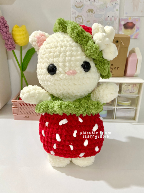 Amigurumi inspirado en el ternurin Gato Persa con un adorable disfraz de fresa 🍓 de Sylvanian Families