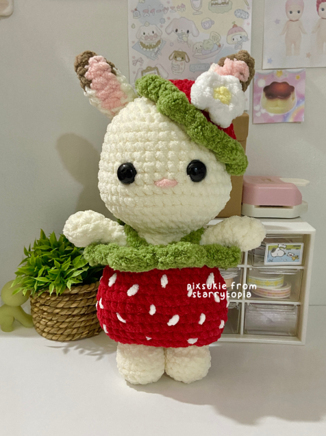 Amigurumi inspirado en el ternurin Conejito chocolate con un adorable disfraz de fresa 🍓 de Sylvanian Families