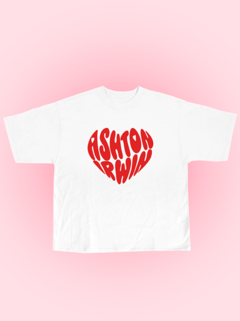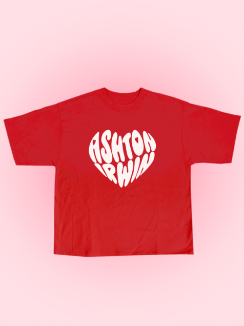 Con diseño de corazón con el nombre de Ashton Irwin al frente.