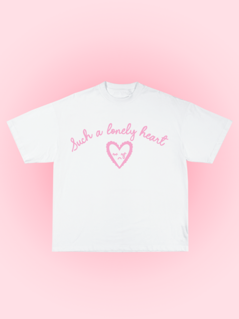 Camiseta blanca “Lonely Heart” unisex de algodón, con cuello redondo.