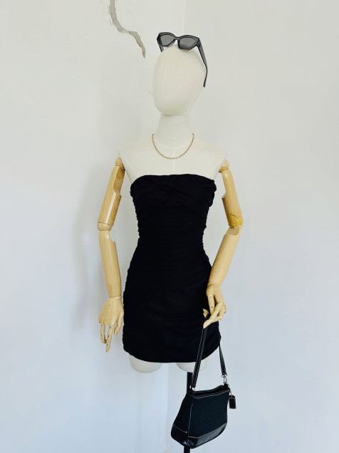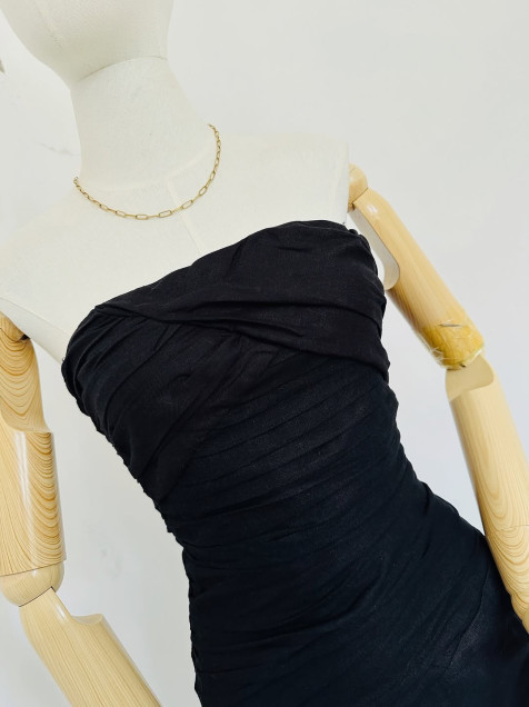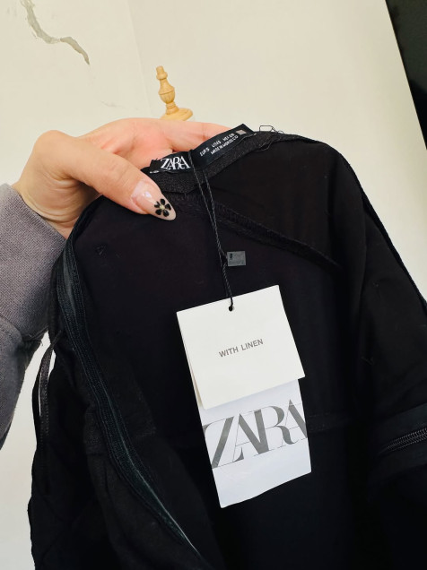Tela de lino, tiene forro y cierre, se ajusta al cuerpo muy bonito