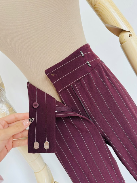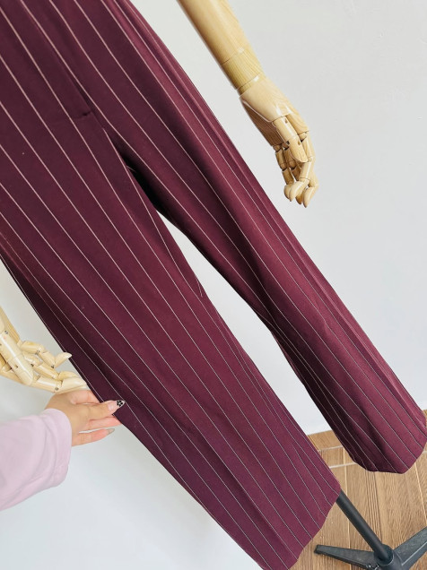 Trousers wide leg a la cintura color vino, tiro alto, piernas anchas