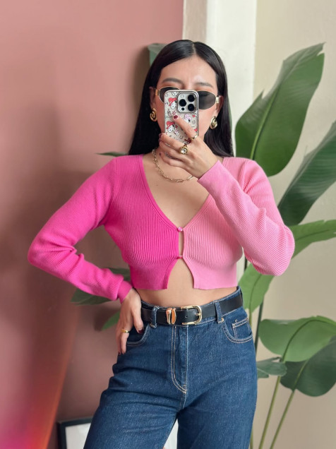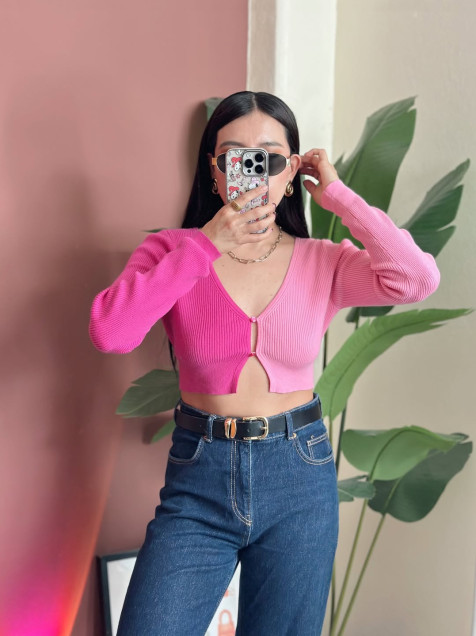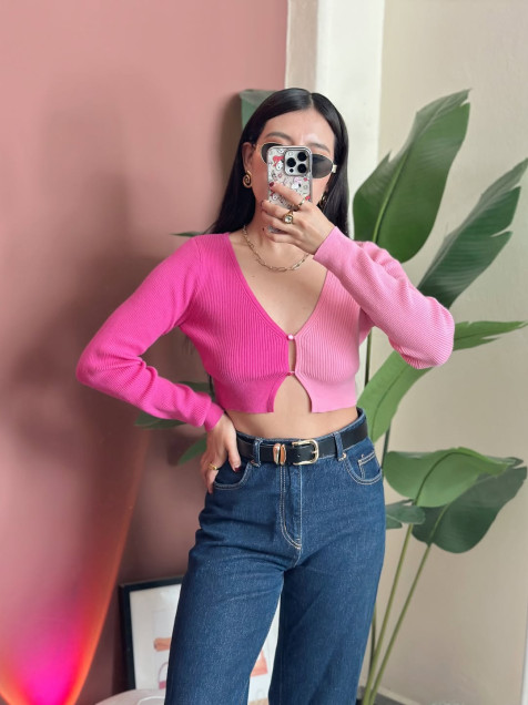 Top bi color acanalado de manga larga, ligero pero no transparenta