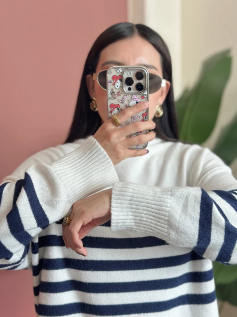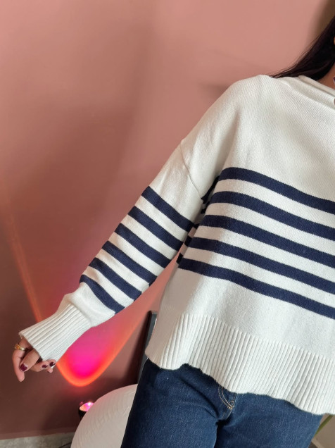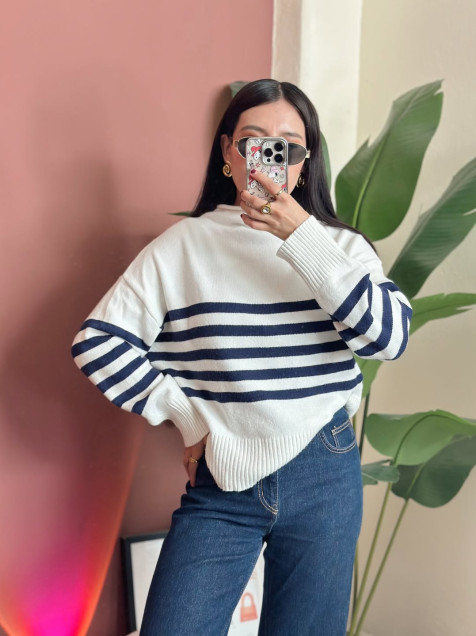 Suéter de punto ligero a rayas color azul marino, estilo oversize