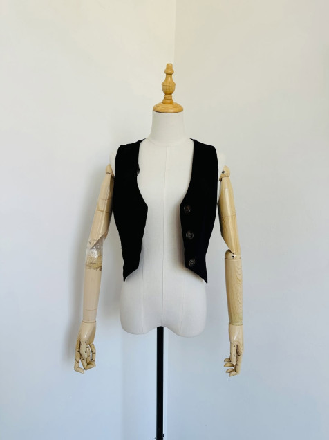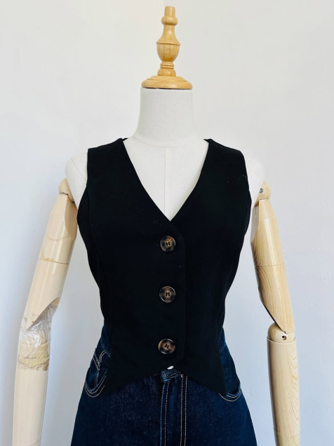 chaleco tipo sastre color negro, tiene botones, excelente calidad