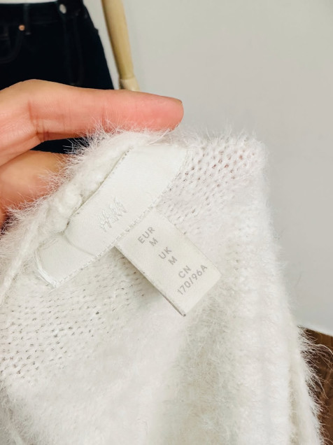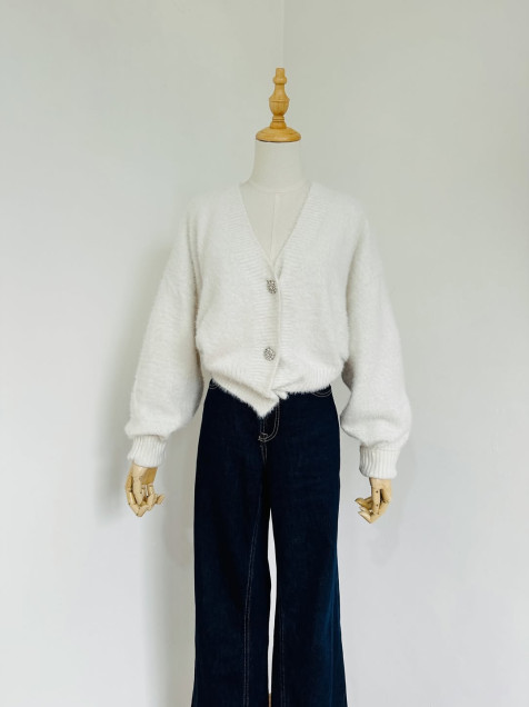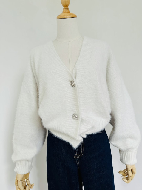 Cardigan fluffy color blanco #HM con botones de piedritas
