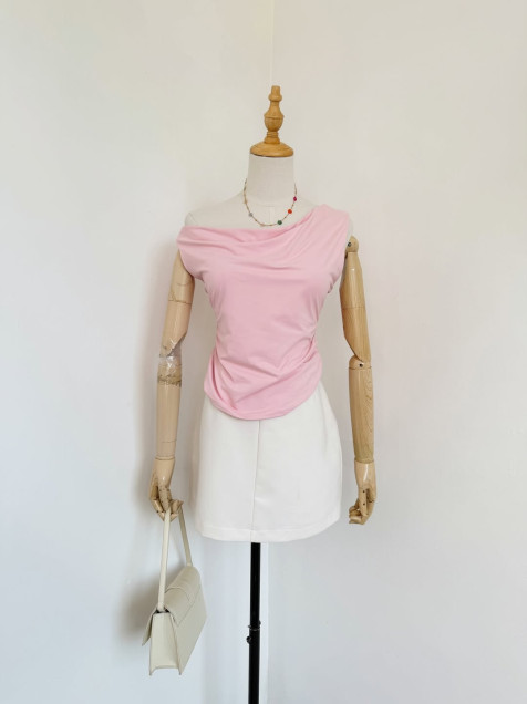Top rosa pastel estilo fruncido, súper lindo