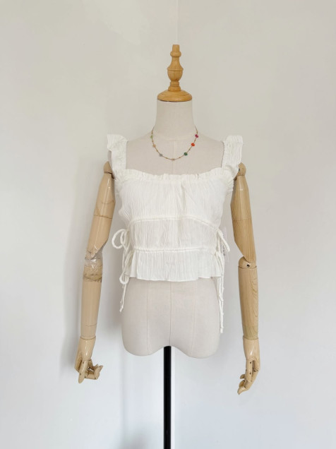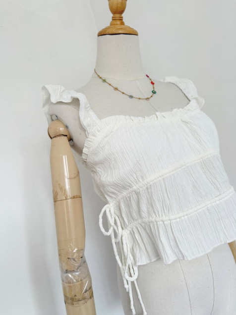 top fruncido blanco, ligero y cómodo, color blanco