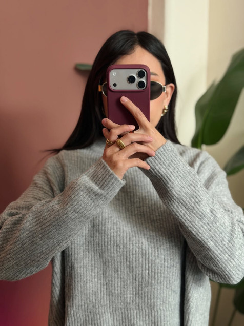 suéter de punto color gris con abertura en la espalda, súper suave