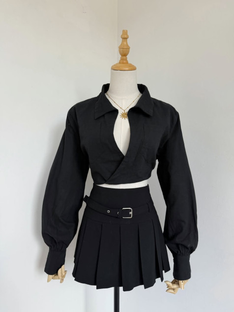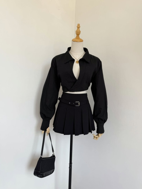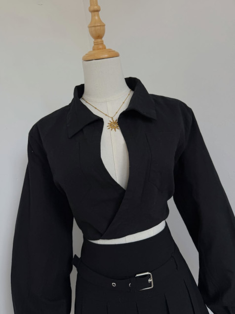 camisa de lino cruzada, manga larga y escote profundo
