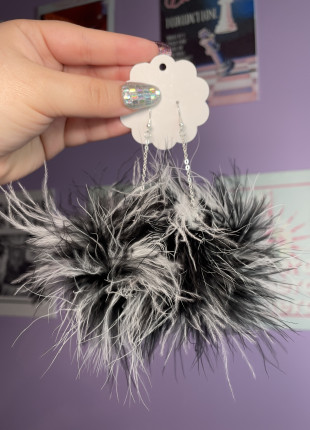 Aretes Fluffy - Mix Negro/Blanco