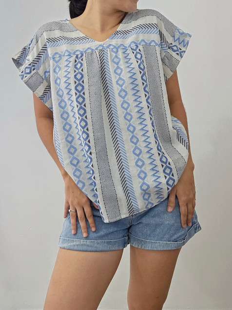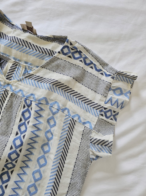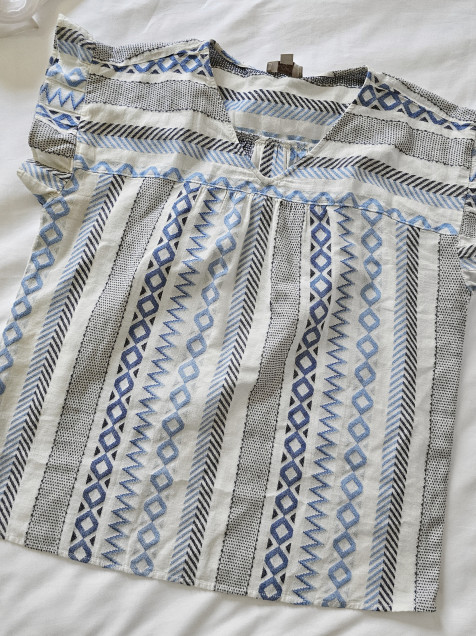 Blusa blamca con bordado en azul y gris oscuro, super fresca ☆ Talla M