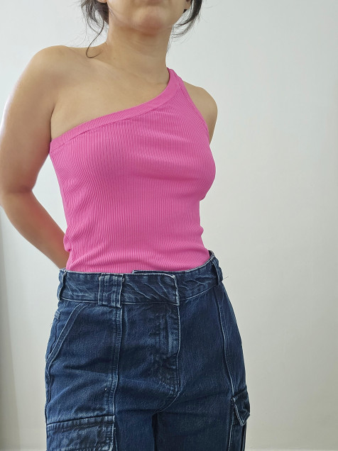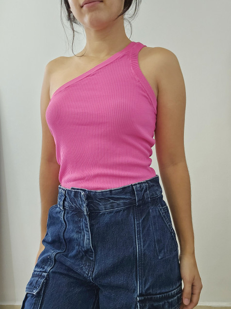 Blusa de un hombro color fucsia de la marca Zara ☆ Talla M