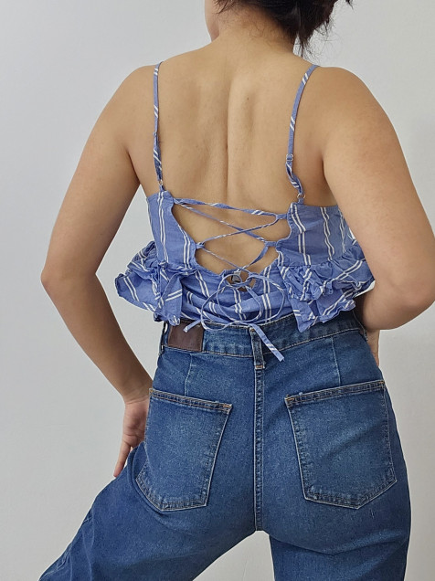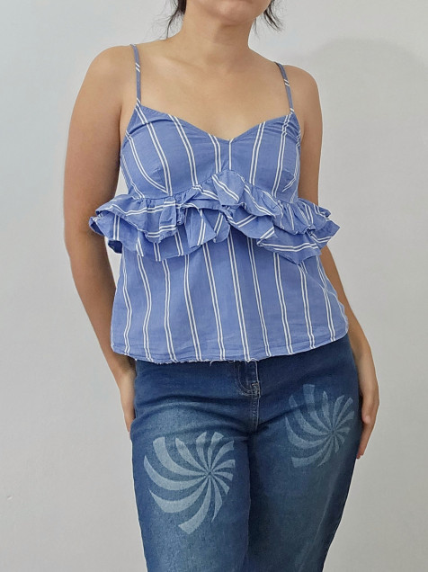 Blusa de tirantes azul con rayas, Stradivarius ☆ Talla S