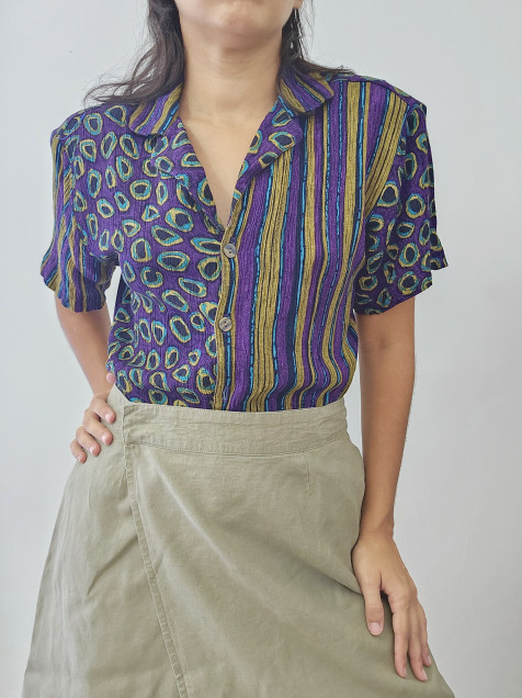 Camisa vintage Casual corner, estampado increíble, tela con textura ☆ Talla M