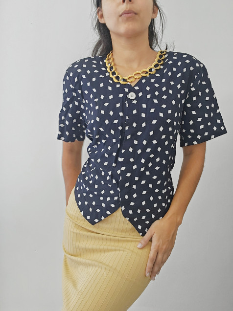 Camisa vintage azul marino, botones escondidos menos el primero ☆ Talla 10 ( M )