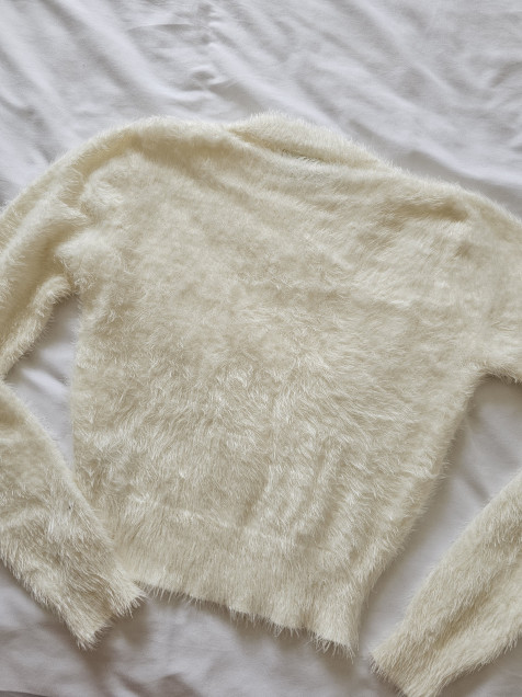 Suéter peludito, super suave, esta deli, color blanco sin detalles ☆ Talla S / M