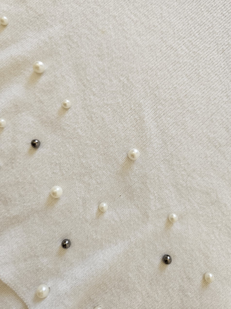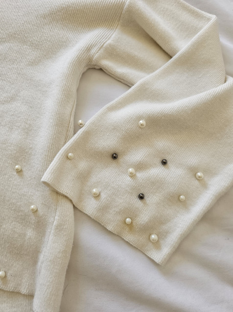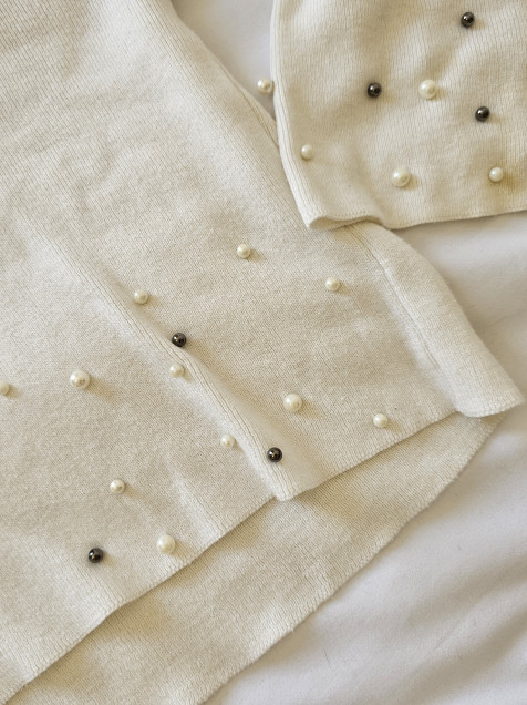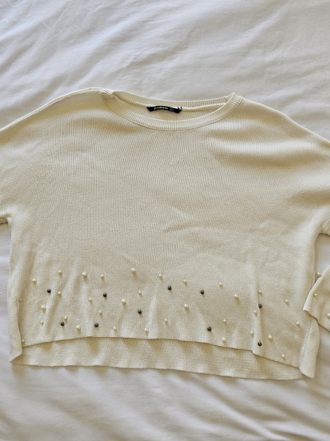 Sueter Stradivarius blanco, manga amplia co apliques de perla fantasía ☆ Talla M
