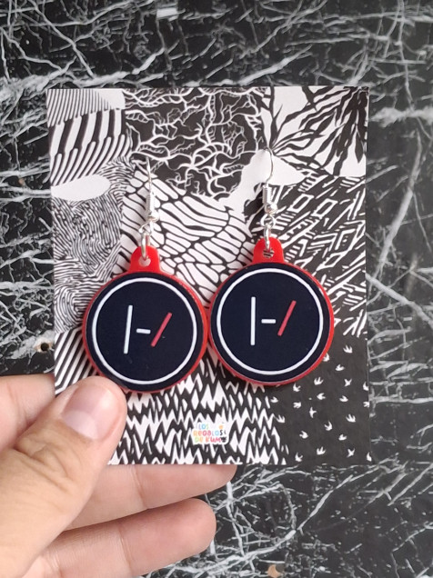 Aretitos inspirados en 𝚝𝚠𝚎𝚗𝚝𝚢 𝚘𝚗𝚎 𝚙𝚒𝚕𝚘𝚝𝚜, elaborados de acrílico y hechos con mucho cariño.♡
